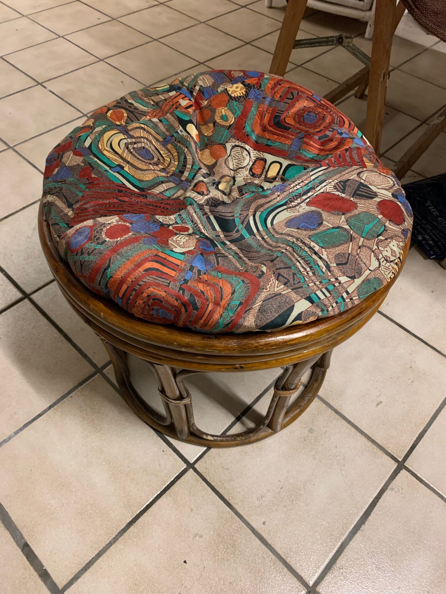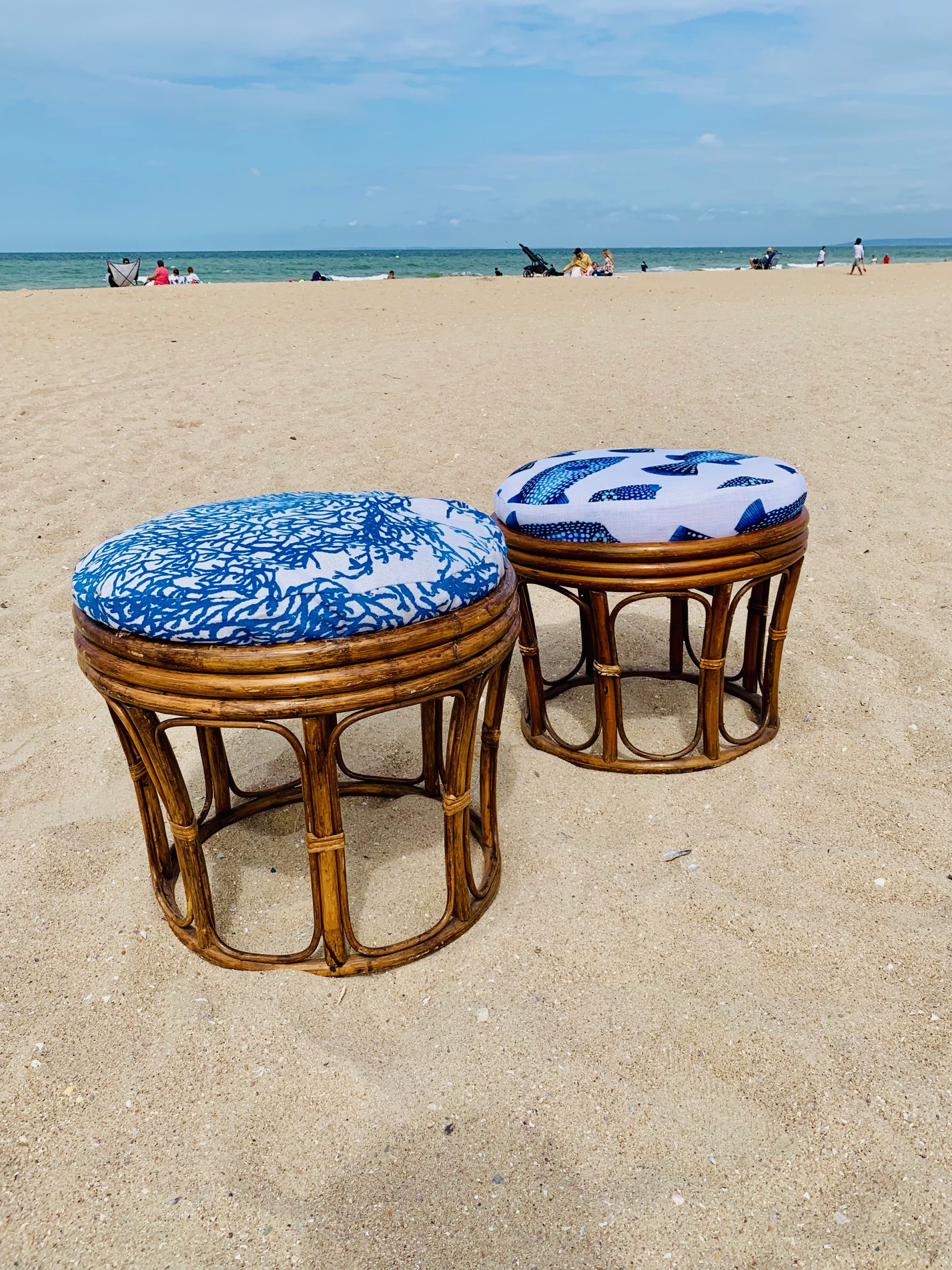 Fauteuil style colonial revisité – Tissu rétro bleu et mousse HR