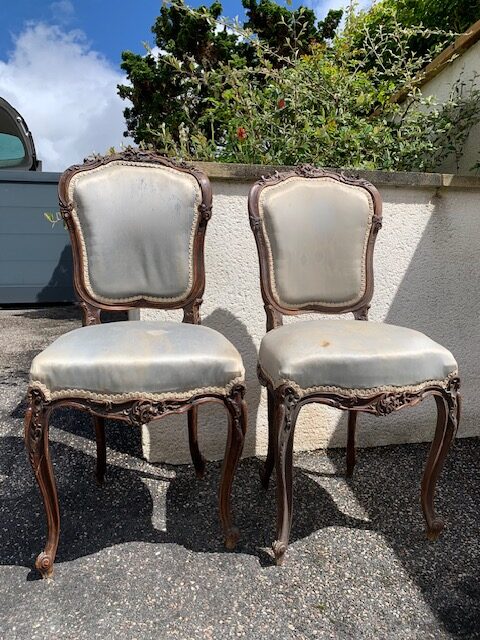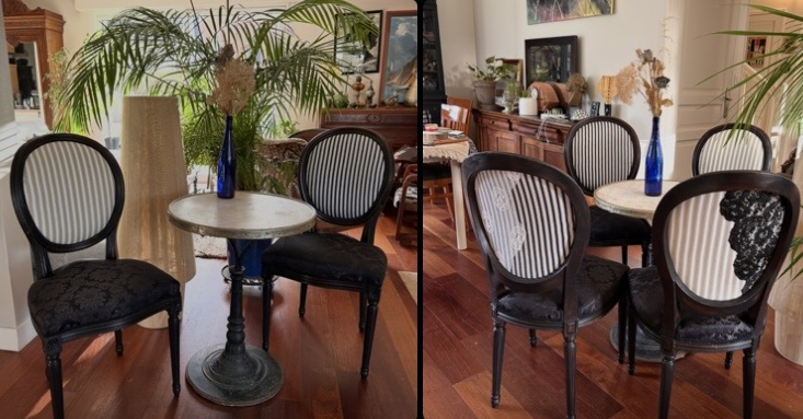 Ces 4 chaises Louis XVI « Augustines 1900 » ont flirté avec le luxe d’un hôtel de la côte Normande avant de reprendre leur pouvoir de séduction
